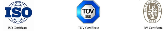 所有产品均通过ISO9001:2008国际质量管理体系。同时我公司已通过BV认证和TUV认证。