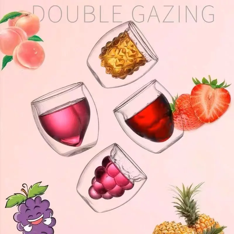 水果设计双壁玻璃茶杯